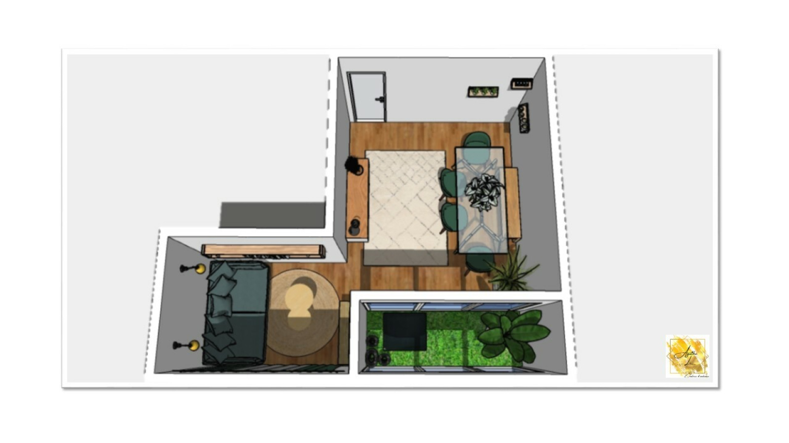 Des travaux de rafraichissements sont à prévoir, agencement proposé par Agathe L crétarice d'Ambiance.