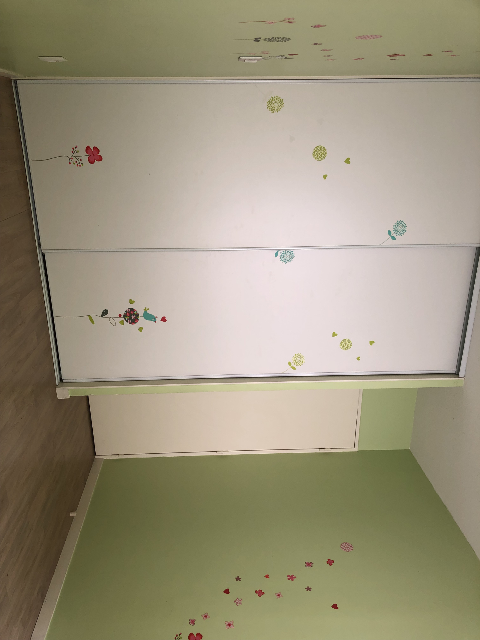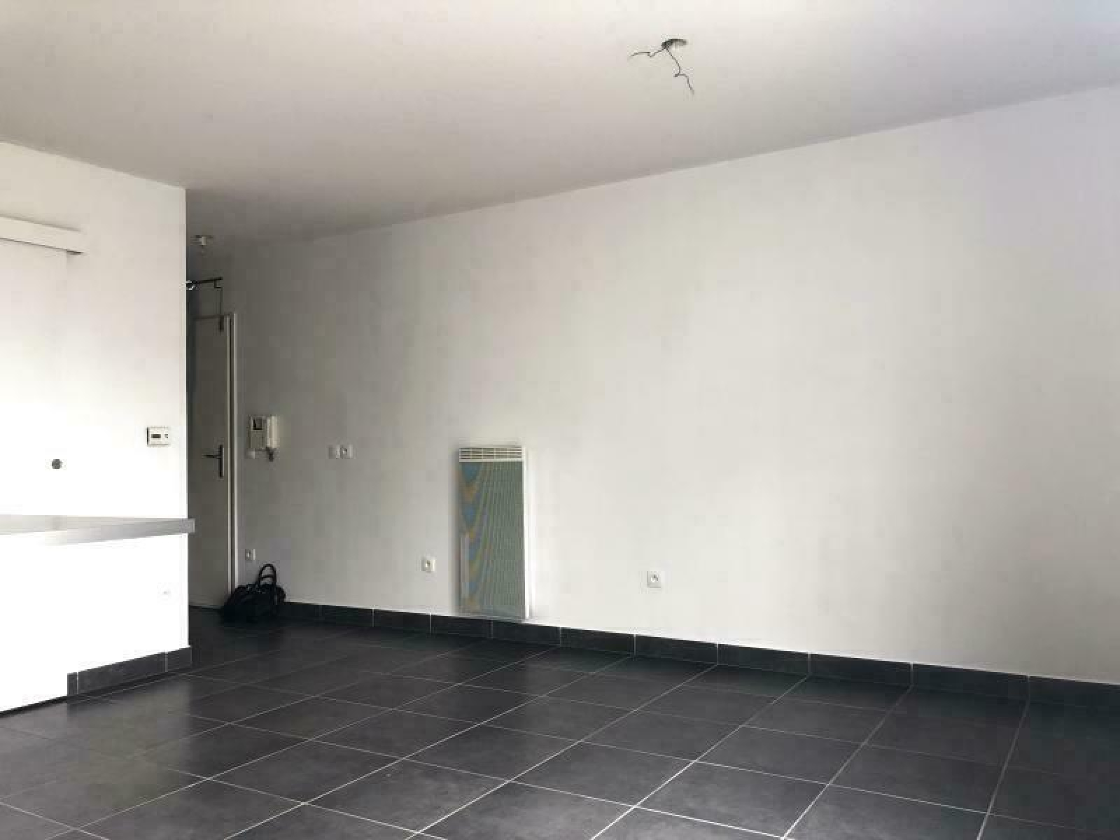 Chauffage électrique, double vitrage et volets roulants électriques dans le salon.